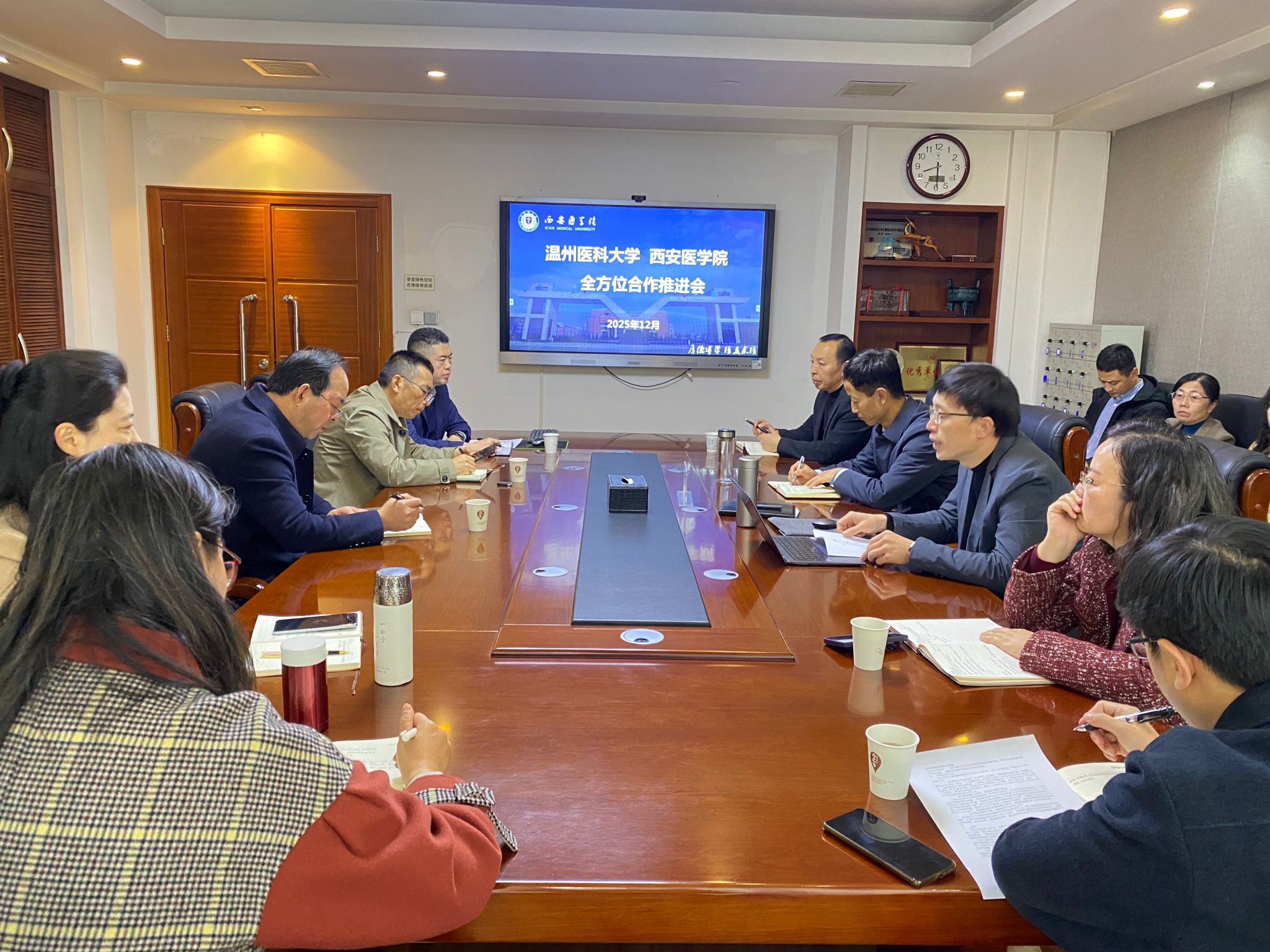 会上,杨卓虎副书记指出,温州医科大学在眼视光医学、药学、临床医学等领域的办学经验与资源优势,与西安医学院发展需求高度契合。他要求各部门立足职责提出具体合作设想,牵头部门做好梳理汇总,为后续对接提供清晰指引,切实推动合作落地见效。