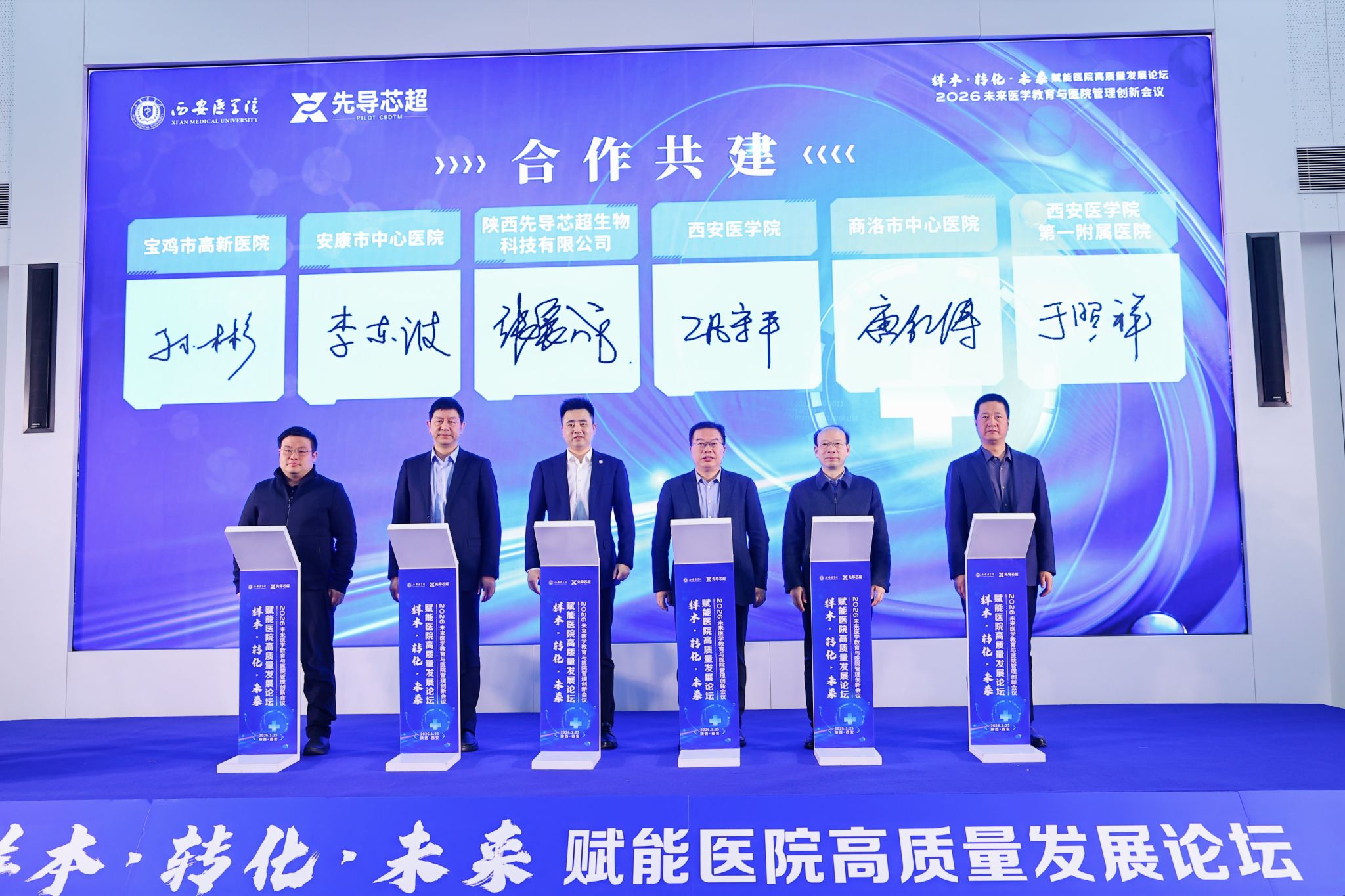 会上,我校与安康市中心医院、商洛市中心医院、宝鸡市高新医院及我校第一、第二、第三附属医院、附属宝鸡医院、附属汉江医院等多家医疗机构签署共建合作协议,初步形成覆盖全省、联通西部的样本资源协作网络。