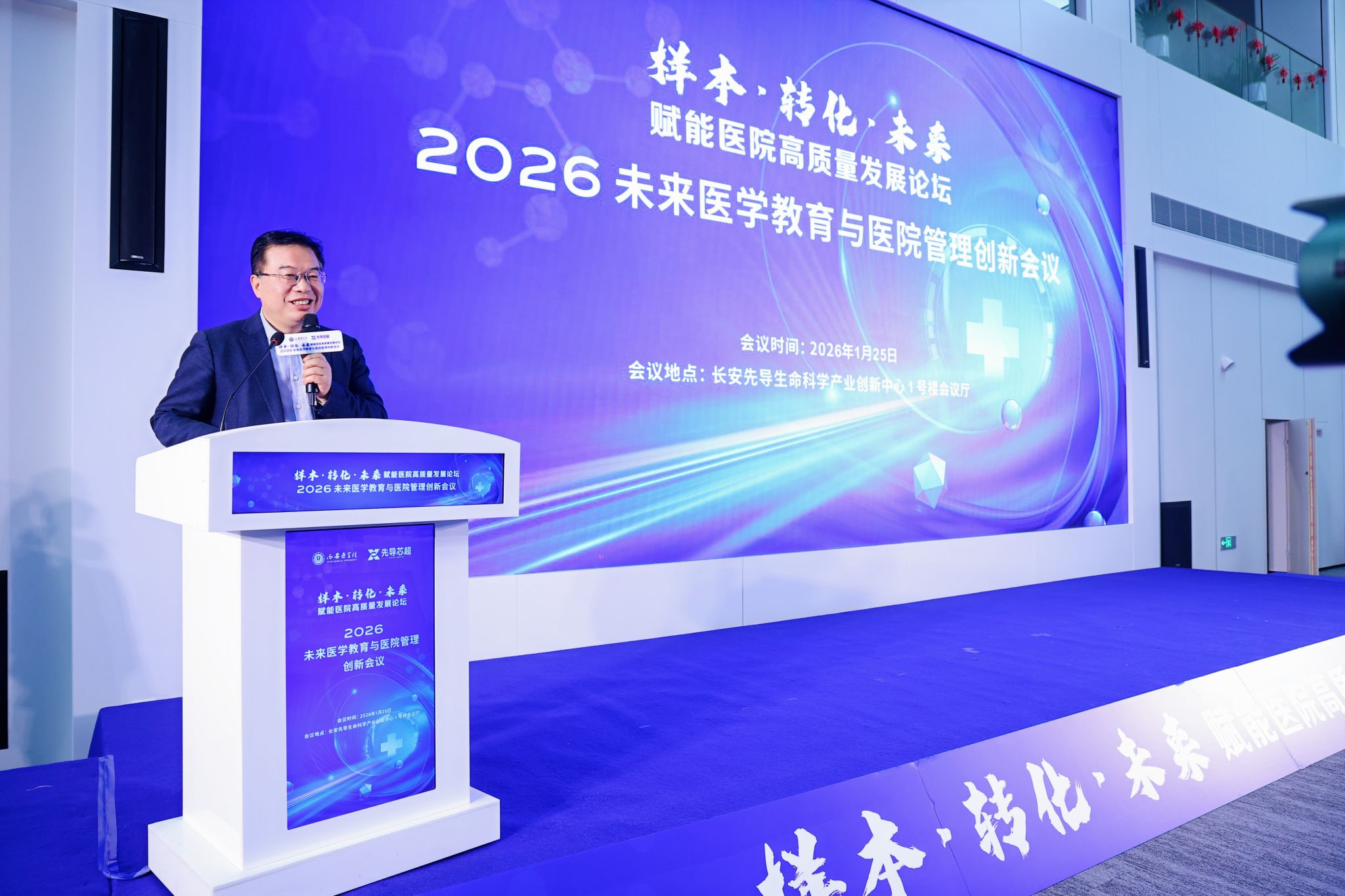 1月25日,由我校主办、陕西长安先导产业创新中心与上海芯超生物科技有限公司协办的“样本·转化·未来——赋能医院高质量发展论坛”在西安举行。论坛聚焦生物样本库建设与临床转化协同机制,吸引了来自政府、高校、医院及企业的百余位代表参会,共同见证“西安医学院秦地协同创新生物医学样本库”建设启动,共商医学创新与区域融合发展新路径。